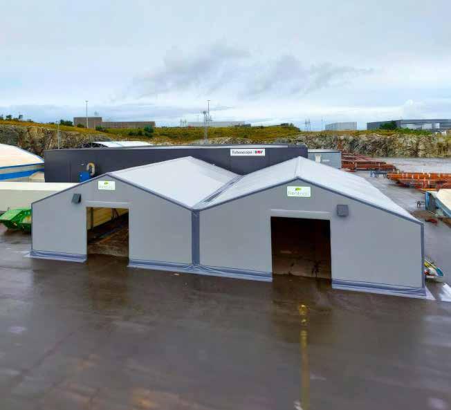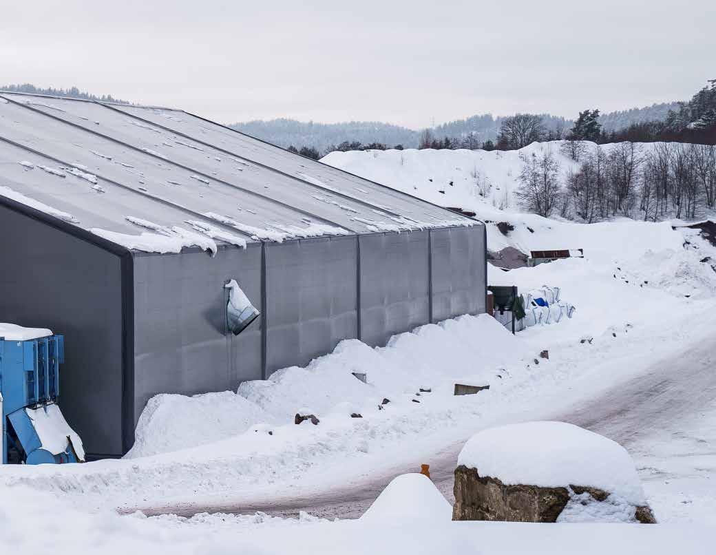 Our cladding work can be seen on many of the projects featured in this issue of the Fabric Engineer. Highlights this year include Rubbhall AS’ huge production facility for Larvikittblokka AS (p.18), a smart storage solution for Aaltvedt AS (p. 24), and a fully-custom Rubbhall for Findus AS (p. 28).