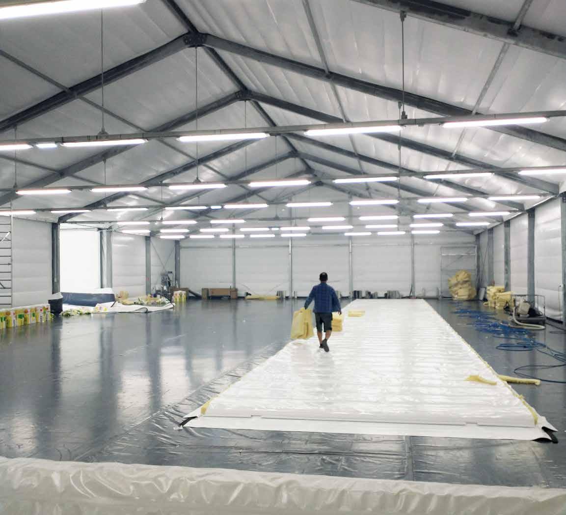 David and Chief Engineer Gary Sutryn, PE who also started with Rubb 40 years ago, established Rubb USA as a leader in the design, manufacturing, and construction of fabricclad buildings throughout North America. Thanks to their and the Rubb team’s stewardship, the company has experienced an ever-increasing demand for clear-span, code-compliant, relocatable buildings which today are built in clear spans up to 91m and clad with fabric, metal, and other materials to suit customer needs.