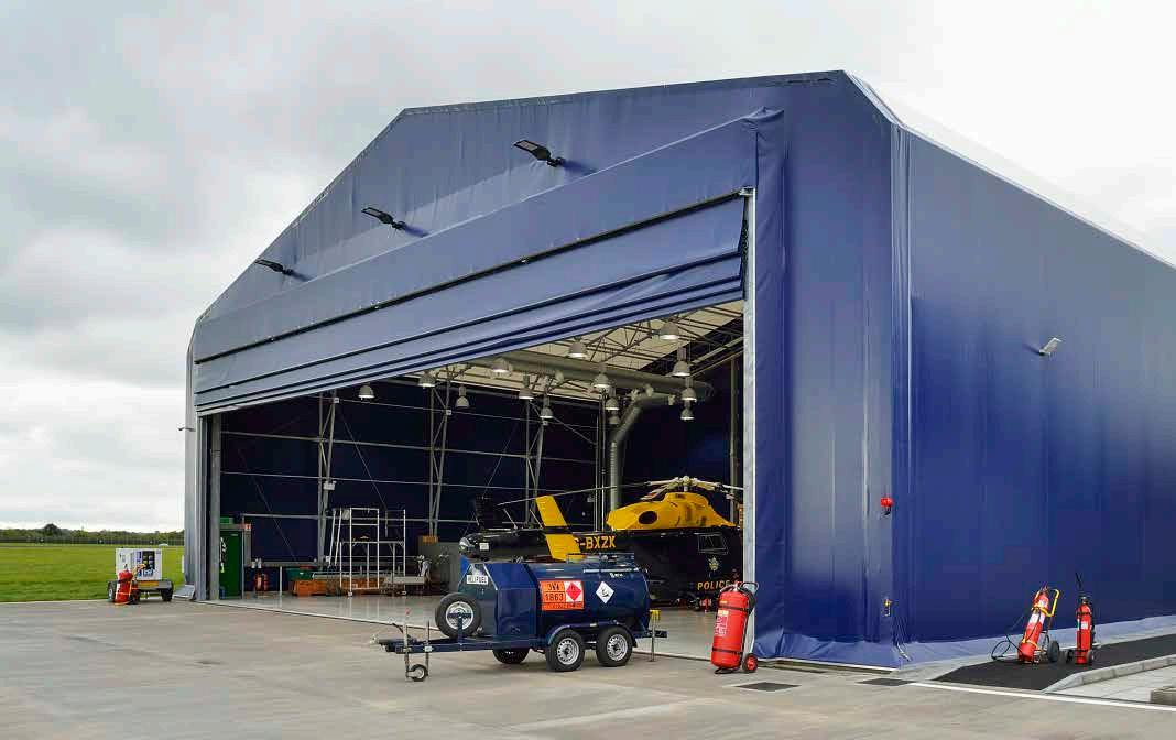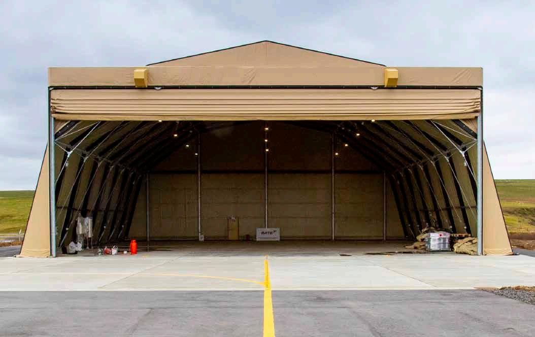 The EFASS hangar is designed for rapid deployment. Lightweight, robust, and relocatable, these hangars are available in four widths (11m, 20.4m, 25m, and 30m).