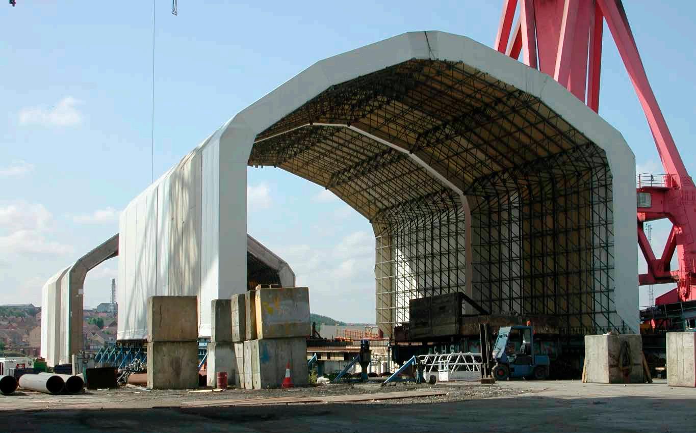 The Swan Hunter shipyard buildings are a perfect example of the longevity and adaptability of Rubb structures. Originally manufactured in 1982, they remain fully operational over 40 years later—now serving the shipbuilding industry in India.