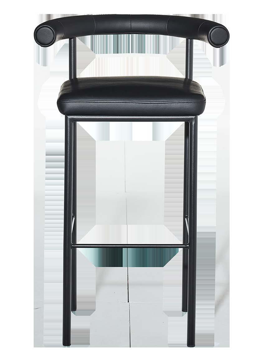 Leather and Topaz Bar Stool in Black Faux Leather.