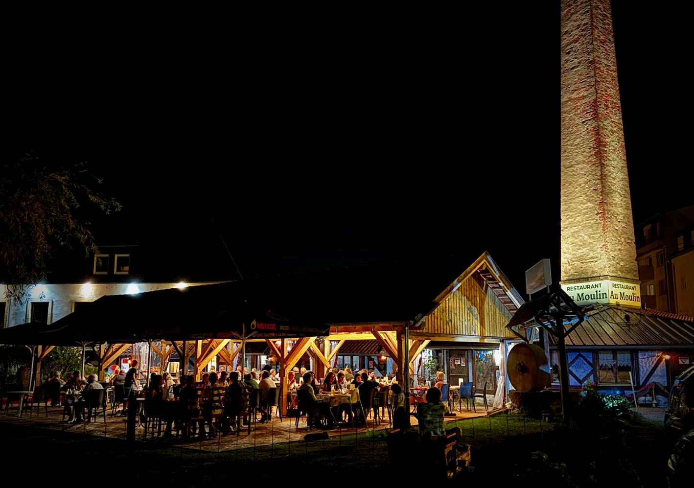 Un lieu chargé d’histoire… À Bischwiller et alentour, le restaurant Au Moulin est une véritable institution. « Tous nos clients sont venus au moins une fois quand ils étaient petits. Ils sont ravis de retrouver le restaurant de leur enfance », raconte Esko Nokic. Tout a changé, mais rien n’a bougé : s’il a fallu travailler dur pour redonner un coup de jeune, les clients retrouvent l’esprit de l’époque, fidèle à leurs souvenirs. Le lieu, construit autour d’une imposante cheminée d’usine textile de la fin du xix e siècle, abrite toujours son immense Kachelofe, et on y retrouve cette atmosphère rustique, authentique et « heimlich » des stubs alsaciennes.