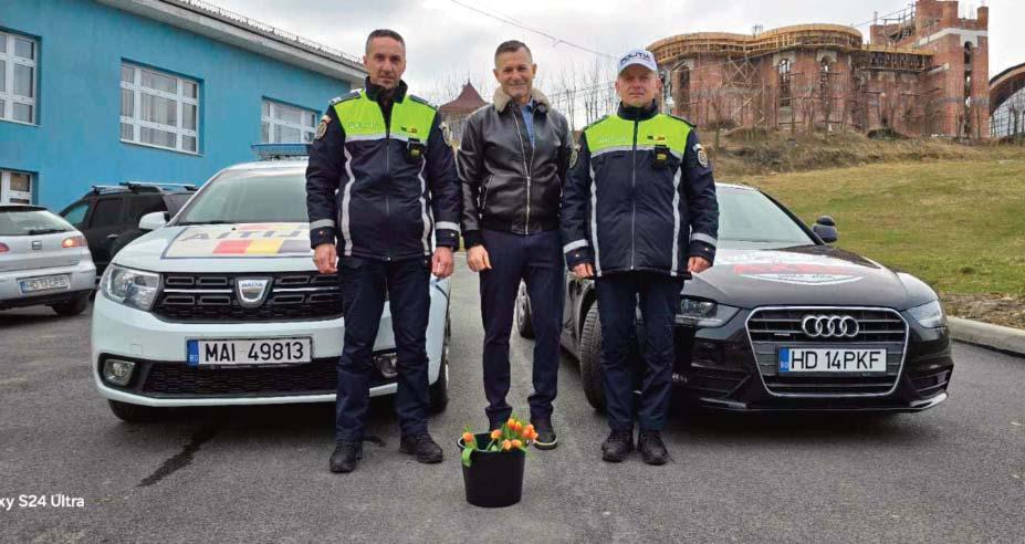 Agenții de poliție Daniel Ion Vamvu și Codruţ Duma au fost atenţi la autoturismele conduse de femei și, regulamentar, le trăgeau pe dreapta. După care se apropiau politicos și le ofereau câte o floare șoferiţelor. Nu știu dacă, și acum, au fost doamne și domnișoare cărora să le fi amplificat bătăile inimii când s-au văzut oprite de Poliţia Rutieră. Îmi amintesc că, acum doi-trei ani, dacă nu mai mult, pe o tânără a apucat-o tremuratul pe când îi spunea celui de la Rutieră că ea nu a făcut nimic rău. Ca și în anii trecuţi, florile pe care le-au înmânat agenţii au fost oferite de domnul Adrian Petcu de la Școala de Șoferi AXEL, cu care Poliţia Rutieră din Vulcan are o colaborare îndelungată.
