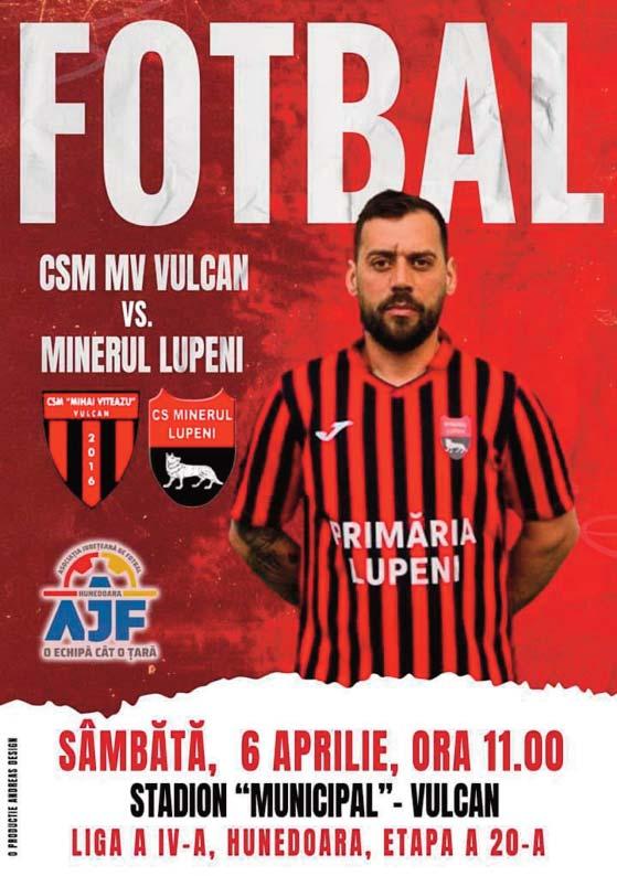 Cel mai interesant meci de fotbal, în Valea Jiului, va fi cel dintre CSM Vulcan și Minerul Lupeni.