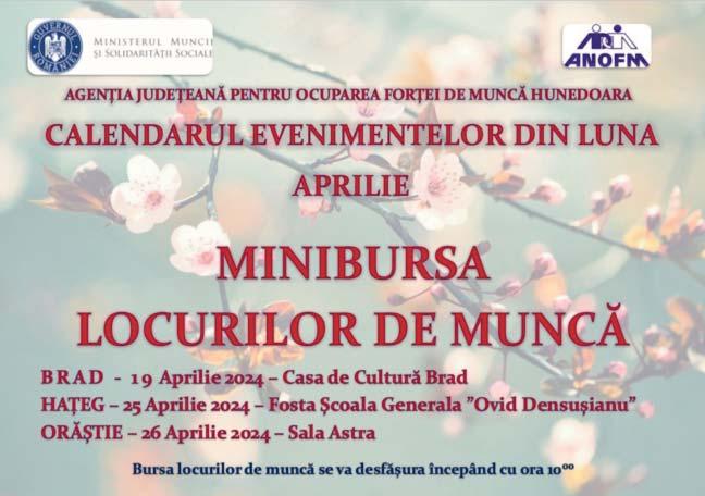 După succesul bursei mărţișorului AJOFM Hunedoara a decis să organizeze încă un maraton de întâlniri, de această dată de o anvergură mai mica la Brad, Hateg și Orăștie. Minibursele, după cum au fost numite de organizatori, vin în urma ofertelor depuse de angajatori. În acest moment sunt înregistrate 200 de locuri de