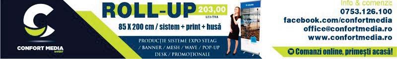 Ne poţi căuta (online – pe www.confortmedia.ro și www.mediaverse.ro, dar şi la sediile din Petroșani sau Timișoara) pentru imprimare bannere, imprimare mesh, rollup, autocolant geamuri, steaguri publicitare la comandă, cărţi de vizită, pliante, flyere, plăcuţe de casă, indicatoare rutiere, pereţi textili, autocolante, casete luminoase, rame afişaj, soluţii pentru showroom, standuri de broşuri, suport flyere, suport meniuri, people stooper – capră stradală, steaguri expoziţionale, corturi, aviziere, urne din plastic, numere de casă, perete textil spider, tipărituri publicitare – printuri la comandă…