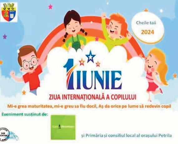 Asociaţia San Montan, împreună cu Primăria și Consiliul local al orașului Petrila, invită copiii petrileni pe Cheile Tăii, pe data de 1 iunie 2024, începând cu ora 12:00, pentru a sărbători împreună “Ziua Internaţională a Copilului”. Sunt pregătite diverse activităţi precum: plimbări călare, plimbare cu ATVul, pictură pe piatră sau coală de hârtie, airsoft, muzică, dulciuri și diplome! La eveniment vor fi prezenţi “Mickey și Minnie”, dar și “Ana cu Elsa”!