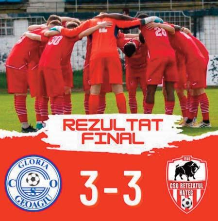 pagina oficială a echipei din Ţara Haţegului. Finalul de joc a fost marcat de două erori în zona defensivă, care au permis celor de la Gloria Geoagiu să egaleze situaţia pe tabelă. Totuși, echipa din Haţeg putea să preia din nou conducerea cu 5 minute înainte de final, când Penzeș a trimis în transversală din interiorul careului.