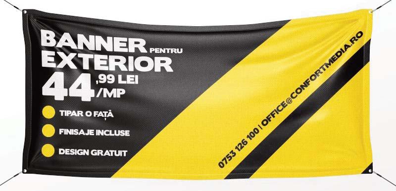 potenţialii clienţi să sune pentru a afla detalii referitoare la oferta firmei tale. De 20 de ani, echipa Confort Media produce și livrează bannere și mesh-uri în întreaga ţară. Adesea, pentru că preţurile noastre sunt bune, iar capacitatea de producţie este uriașă, avem comenzi care ajung și peste hotare, în ţări precum Germania, Franţa sau Anglia. Actualmente, sute de persoane fizice și firme comandă bannere și mesh-uri la preţuri corecte, fie online (pe site, prin e-mail sau prin Whats App), fie direct la birourile noastre de vânzări din Petroșani și Timișoara. Astăzi, bannere și mesh-uri produse de Confort Media pot fi văzute la tot pasul, în întreaga ţară. Concret, preţul final / metru pătrat de banner (sau mesh) cu toate finisajele necesare incluse (tivuri, buzunare și