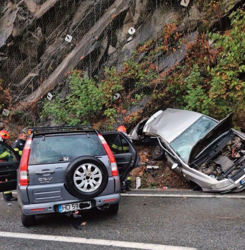 Totul s-a produs pe Defileul Jiului, când în urma impactului violent unul dintre autoturisme a fost proiectat înafara părţii carosabile, iar șoferul din Lupeni a fost grav rănit.