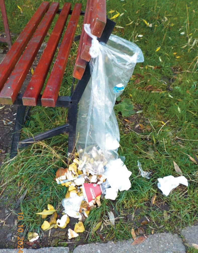 Este vorba, ca să nu o mai întind, de covorul de seminţe sau de pungile și hârtiile de lângă ele. Asta, deși băncile au, agăţate de ele, saci destinaţi colectării unor astfel de deșeuri. Numai că, deși au unde să le pună ambalajul produselor pe care le consumă, unii tineri, fiindcă ei vin și stau mai des pe băncile de la 3A1, preferă să le arunce pe jos.