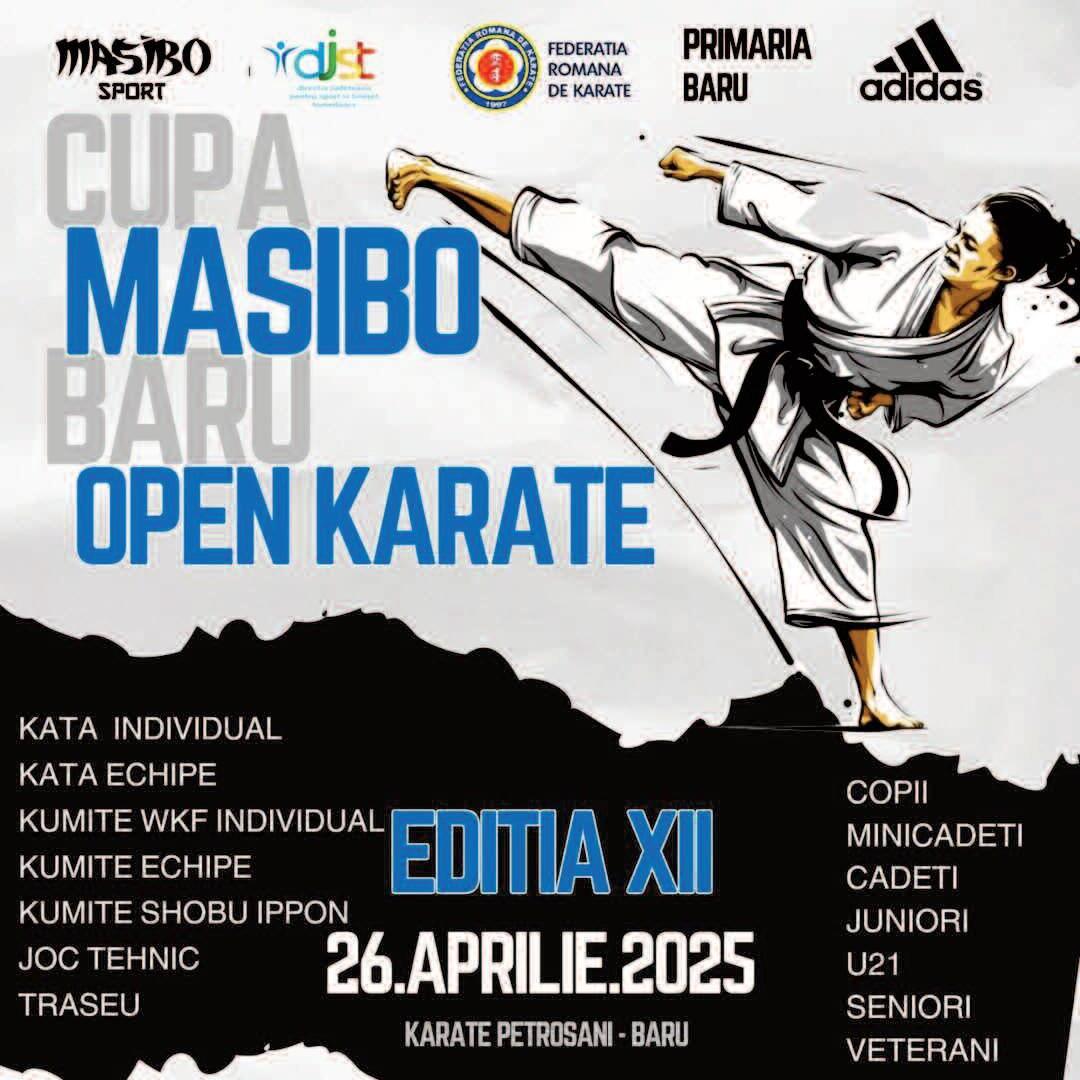 Pe 26 aprilie, la Baru Mare, va avea loc cea de-a XII-a ediție a competiției Cupa Masibo. Evenimentul este organizat de CS Poli Karate Categoriile sunt deschise pentru toate vârstele, la toate probele: traseu, joc tehnic, kata individual/echipe, kumite individual/echipe și kumite shobu ippon "Vă așteptăm în număr cât mai mare să participați la întrecere!", a transmis antrenorul Radu Polifronie