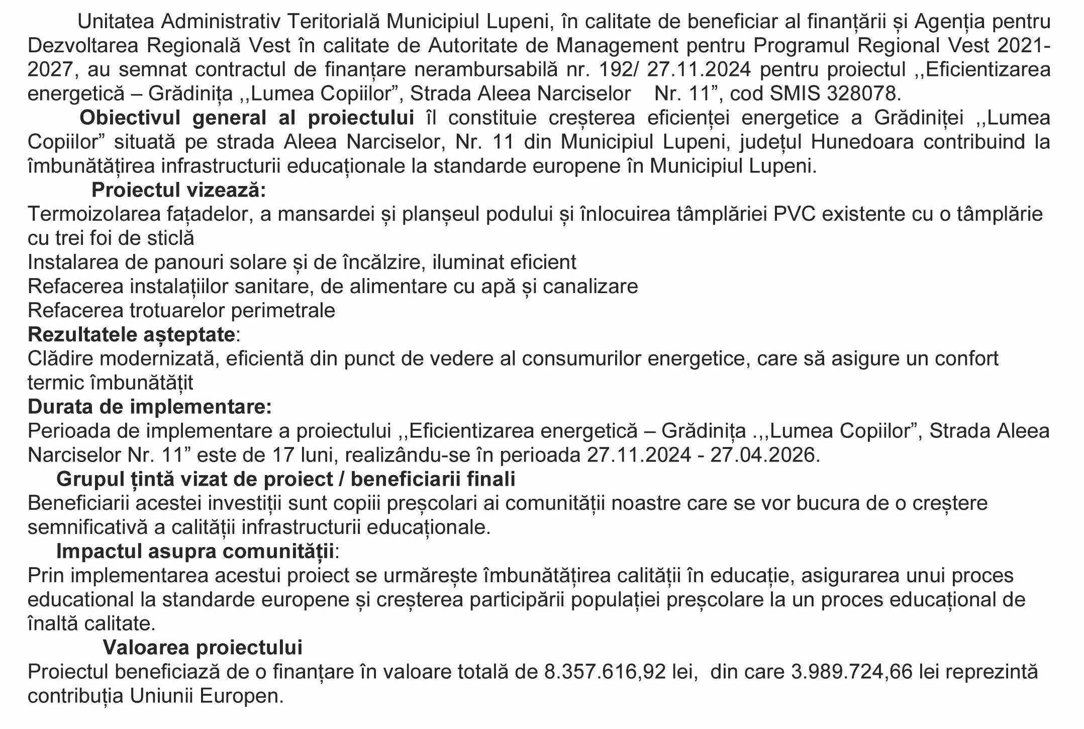 Relații la telefon 0761756839 sau office@zvj.ro.