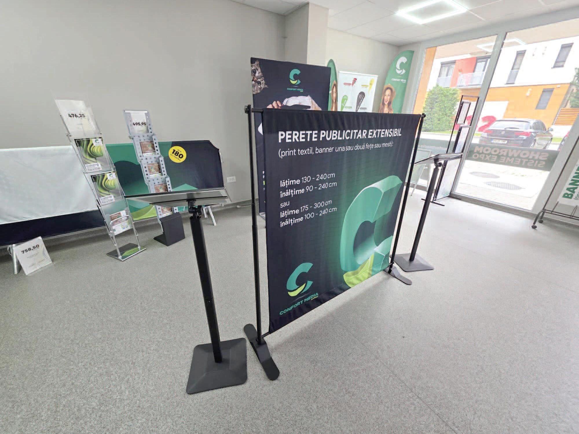 Fie că ești antreprenor, organizator de evenimente sau pur și simplu vrei să îți faci afacerea remarcată, te ajută oricând firma de publicitate din Petroșani - Confort Media. Găsești la noi toate instrumentele necesare pentru promovare eficientă. De la standuri expoziționale și rollup-uri până la pliante și panouri, ai totul într-un singur loc. Produsele pot fi comandate exclusiv online, iar ridicarea se face direct din sediul local, fără timpi de așteptare inutili.