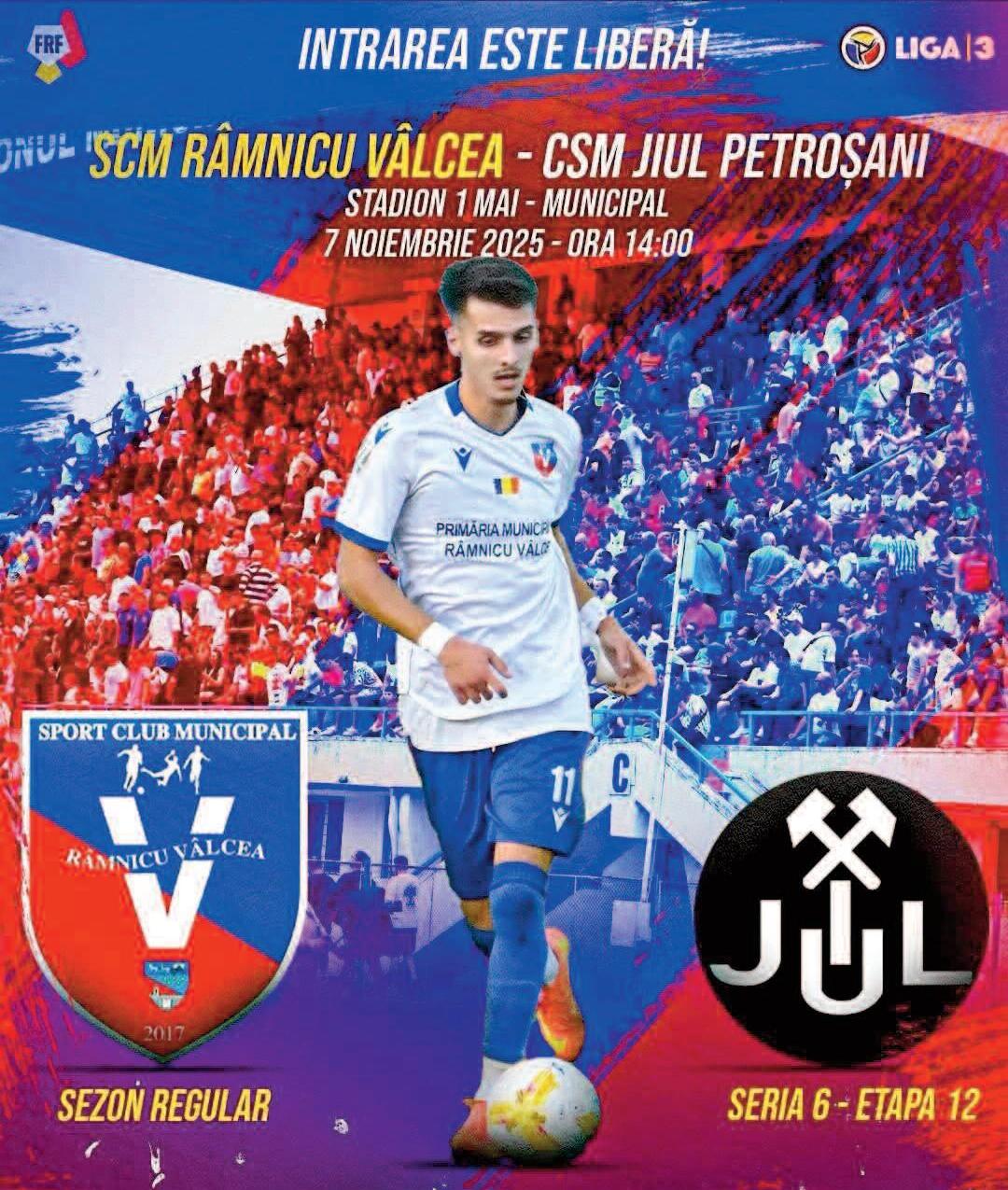 Liderul SCM Râmnicu Vâlcea întâlnește acasă, ca adversar, ocupanta locului 2, CSM Jiul Petroșani, vineri, 7 noiembrie, de la ora 14:00, în etapa 12 (retur) Intrarea la meci este gratuită.