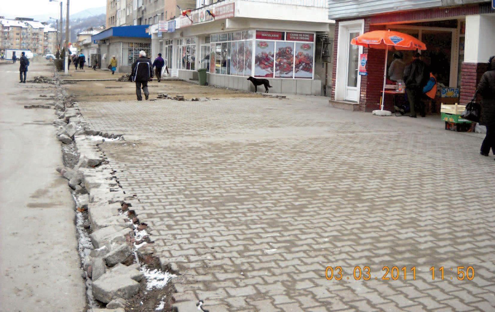 în Vulcan, municipiu în care montarea alandala a pavelelor de pe un tronson al trotuarului nordic, când cu așa-zisa modernizare a Bulevardului Mihai Viteazul, le creează probleme pietonilor și îi dă dureri actualei conduceri a administrației publice locale. Nu s-ar fi ajuns la asta, dacă se păstra pavajul existent și care a început să fie scos în martie 2011 Acesta se întindea de la UNIC la CAP și, garantat, era în stare excelentă