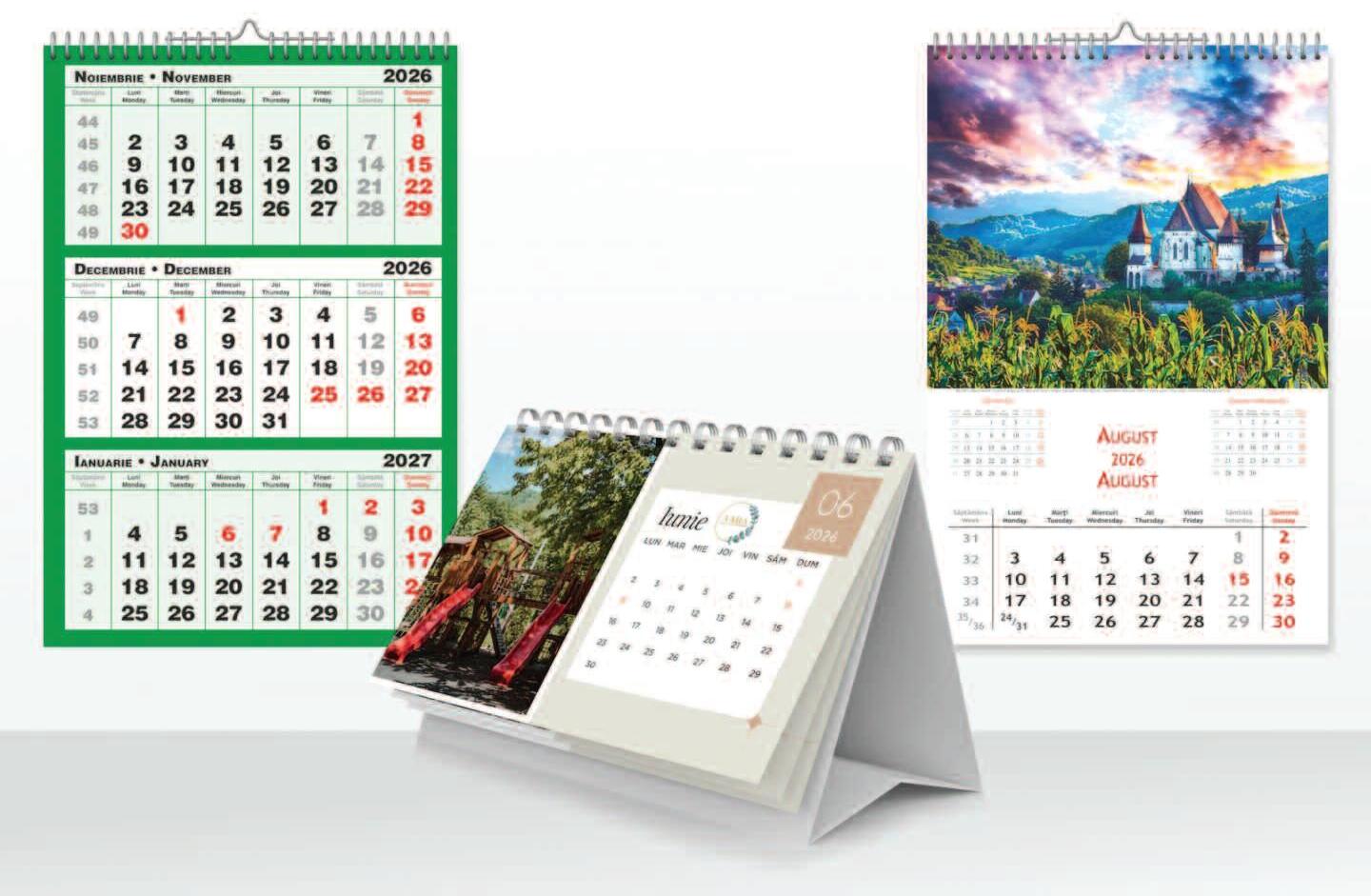 Calendare personalizate 2026 – acestea sunt cele mai populare pentru firme și instituții. Pot fi personalizate cu logo, numele companiei sau chiar un mesaj specific. Sunt ideale pentru birouri de avocați, notari, firme de asigurări sau cabinete medicale, unde identitatea vizuală contează enorm.