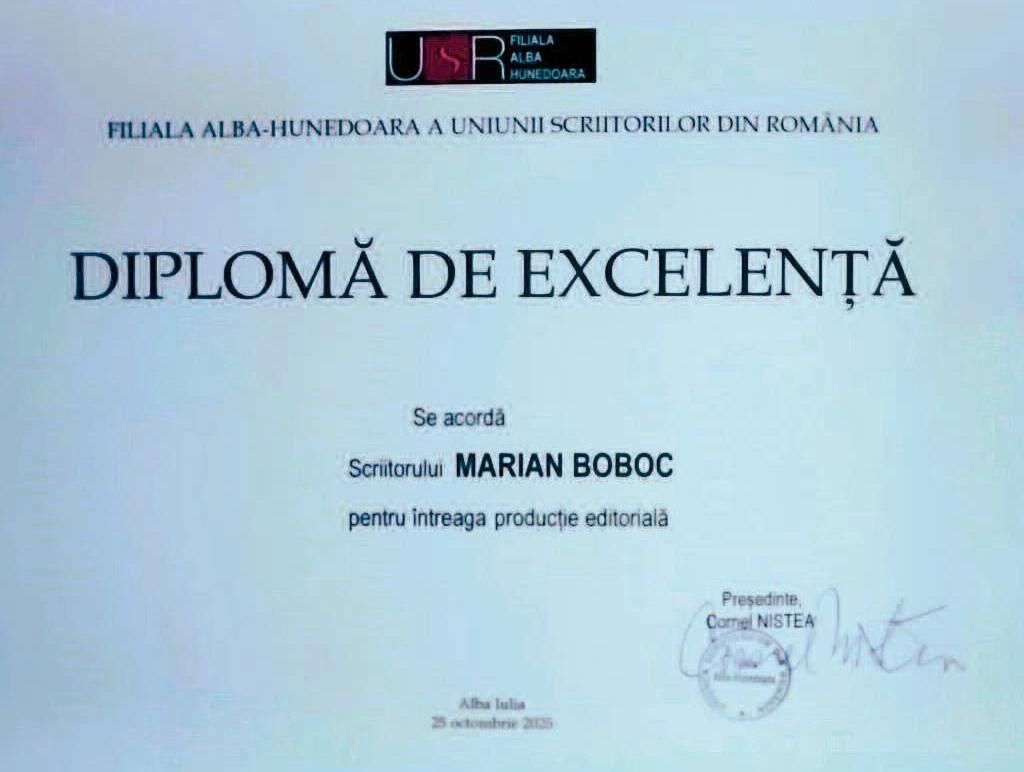 proiectul meu Viețile Văii Jiului. Mulțumesc juriului pentru această recunoaștere, pentru Diploma de Excelență acordată, și celor care, de-a lungul timpului, m-au ajutat, având încredere în proiectul meu editorial”, a declarat Marian Boboc