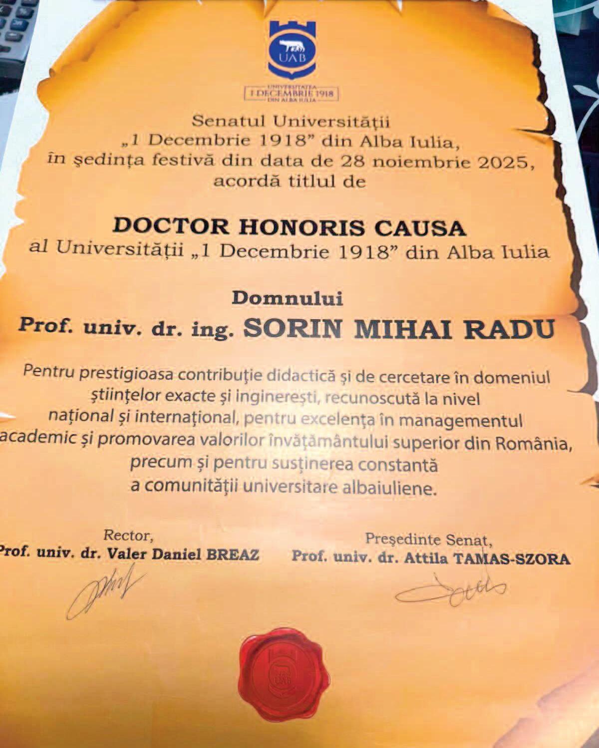 Iulia i-a conferit prof. univ. dr. ing. Radu Sorin Mihai, rectorul Universității din Petroșani, titlul de Doctor Honoris Causa. Distincția a fost acordată în semn de apreciere pentru contribuțiile sale în domeniile ingineriei mecanice, miniere și energetice, precum și pentru impactul asupra mediului academic și dezvoltării învățământului tehnic superior din România.