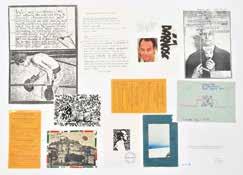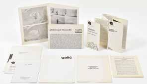 6420 Michael Druks, documentation 1973-1978- Includes 10 original b/w photos of performances and videos, titled in red on verso by the artist. Featured are ‘Playbox London’ 1973, ‘Everybody’s Own Square’ ICC Antwerp 1975 and ‘Territory’ Neue Galerie Aachen 1977. (2) Announcement flyers and cards for ‘Playbox Amsterdam’ at De Appel Amsterdam 1975, ‘Territory’ at Neue Galerie Aachen 1977, ‘Incident & Coincidence’ at Friedrich Bern 1978. (3) Stapled catalogue for ‘Everbody’s Own Yard’ at Whitechapel Art Gallery London 1976, 8 pp. (total 15) Michael Druks (19402022) was an Israeli-born artist with a diverse practice ranging from his avant-garde conceptual works of the 1970s involving video, photography and performance, to his installation works, collages, drawings and paintings.