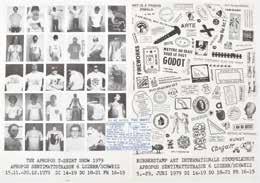 6448 Galerie des Beaux Arts, Marie-Puck Broodthaers, Brussels- Gallery exhibition booklets, staplebound, 20.5 x 14 cm, 16 pp. Text in French and Dutch. Comprises: (1) Piero Manzoni, Nov-Dec 1987, 16 pp. Text by Jan Hoet. (2) Blinky Palermo, Feb 1988, 16 pp. (3) Peter Archer, April 1988. (4) James Coleman, March 1988. Poster, 56 x 41 cm folded to 20.5 x 14 cm. Features a b/w still from the 1977 film ‘Box (Ahahareturnabout)’. (5) James Lee Byars, invitation for the The Letter Reading Society, Oct-Nov 1987. 21 x 14 cm, on very thin paper, dog-eared. (6) Added: Invitation card for a Marcel Broodthaers exhibition at Boymans van Beuningen Rotterdam, 1981. (total 6) € 70 - € 100