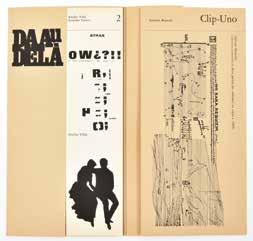 6022 Da-a/u delà No.1, October 1966- First issue of the Magazine of Arts and Literature published by ED912 - Edizioni di Cultura Contemporanea in Milan (1966-1969). Edited by Daniela Palazzoli and Gianni Emilio Simonetti. Softcover, 26.5 x 13 cm, 2 parts each containing a sheet folded into 14 pp. With loose inserted sheet Clip-Uno by Sylvano Bussotti, 26 x 12 cm. Contributions by Ben Vaut ier, André Balthazar, René Bertholo, Rolf-Gunter Dienst, Alexandro Jodorowsky, Julien Blaine, Pierre Garnier, George Brecht, Magdalo Mussio, Dick Higgins, Wolf Vostell, Gianfranco Baruchello, La Monte Young, Mario Diacono, Emilio Villa, Lourdes Castro. Rare, with the original printed wrapper. € 200 - € 400