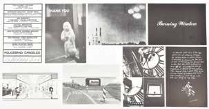 6431 Corps de Garde, Groningen, 1977-1978- Includes a postcard booklet ‘16 dagen’ (1977) and 8 loose cards (1978) published in conjunction with an international perfor mance and video program called ‘Zomermanifestatie’ or ganized in collaboration with the Groninger Museum and De Appel. Postcards by Vito Acconci, James Lee Byars, Jack Goldstein, Dan Graham, David Salle Carolee Schneemann, Paul Sharits, Barbara Bloom, Yvonne Rainer et al. Booklet and cards are near mint. (total 9) € 100 - € 200