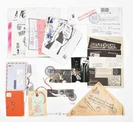 6441 Assorted invitation cards from European spaces- Includes: (1) Invitation to a Broodthaers filmscreening night on Oct. 21 1971 at Städtische Museum Mönchen Gladbach. Large card, 21.5 x 19.5 cm, lists the programme of films. Rare and beautiful copy. (2) Five cards from Gil lespie-Laage, Paris, all 1977. Features Broodthaers ‘Livres et éditions’ and ‘Artistes de la Biennale de Paris’ with Laurie Anderson, Annette Messager, Colette. Mailed copies. (3) Eight cards from Nächt St Stephan, Vienna, all 1978-1979, featuring Filliou, Muehl, Kosuth, Chaimowicz. (4) Mint card presenting Ed Ruscha at MTL Brussels, 1978. (5) Bernar Venet at Daniel Templon Paris, 1977. (total 15) € 80 - € 150