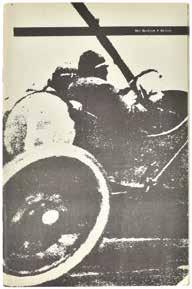 6000 Richard Hamilton, Man Machine & Motion- London, Institute of Contemporary Arts, 1955. Rare catalogue published in conjunction with the innovative exhibition at ICA London designed and organized by Richard Hamilton. 23 x 15 cm, 44 pp. Stapled booklet printed on offwhite and grey paper. Edition of 1000. Catalogue designed by Anthony Froshaug. Text by Reyner Banham, Lawrence Gowing and Richard Hamilton. Dog-eared at lower right corner with tiny chipped off part (5 mm), staples start to rust, else in very good condition.