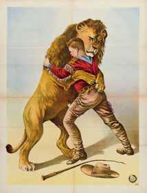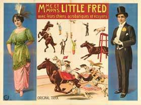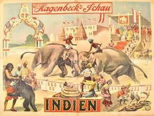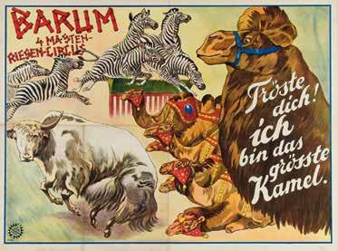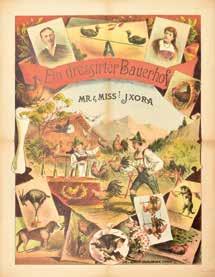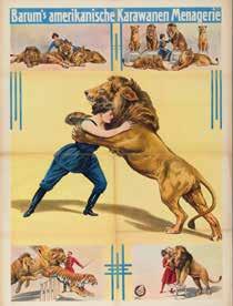 Historically interesting is the fact that quite a few posters were printed before 1900. The earliest poster - a sheep act - in this auction origi nates from 1873, a year after Friedländer opened his business. It was printed on a litho-press in the days before he received bigger printing orders. After ca. 1883 - 1884, his production went up due to the large orders he received from Carl Hagenbeck and the purchase of the pho tolithographic press. The posters printed after this date are also the posters that gained him (and later his sons) (international) appreciation and interest. Nevertheless, this little gem of 1873 should not go unnoticed in the turmoil of bright colours, movement and the overall circus experience Friedländer knew to convey.