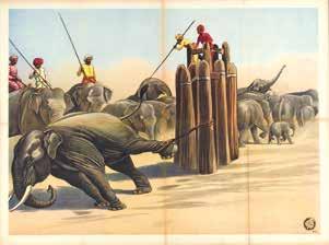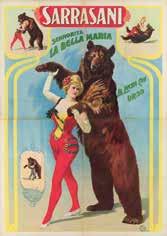 3462 [Sarrasani. Traction engine] Wie circus Sarrasani reist- Grösste und Behrümteste Wanderschau Europa’s. Friedländer, Ham burg, 1910. 96 x 71 cm. Lith. no. 5057. In the lower margin, a small ticket is pasted over the owner’s stamp, Edwin Schirmer’s Welt-Artisten-Archiv. Edges frayed and reinf. on verso, sl. worn along folds. *Circus Sarrasani (Dresden) was known for its use of modern technology making spectac ular acts with e.g. cars, airplanes, boats and projections. After WWI broke out, Hans Stosch-Sarrasani turned the circus into a live-action military war theatre, showing important war scenes of WWI, such as the invasion of Belgium by the Germans in 1914, submarine warfare in the First Battle of the Masurian Lakes for which the entire ring was flooded, and would, a few years later, even show the bombing of London with zeppelins. From 1912 and onwards they started a “Wild West” show with the use of the Sioux Native Americans from the Pine Ridge Agency in South Dakota, and would perform with them at least through 1936. The circus and their permanent building did not survive the bombing of Dresden in 1944. After the war they reestablished in Argentina, where they would become the Circo Nacional Argentino.