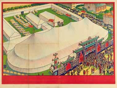 3448 [Big top] “Bird’s-eye view of circus tent and audience”Friedländer, Hamburg, 1926. 96 x 71 cm. Lith. no. 7978. Folded, edgeworn with reinfs. on verso. € 200 - € 400