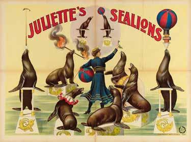 3015 [Sea lions] Capt: Nansen’s educated Sea Lions- Friedländer, Hamburg, 1902. In 2 parts, each ca.71 x 48 cm. Lith. no. 2088. Original top edge is replaced with the banner of “Capt. Nansen”. Mild wear along folding lines, some reinfs. on verso. € 200 - € 400