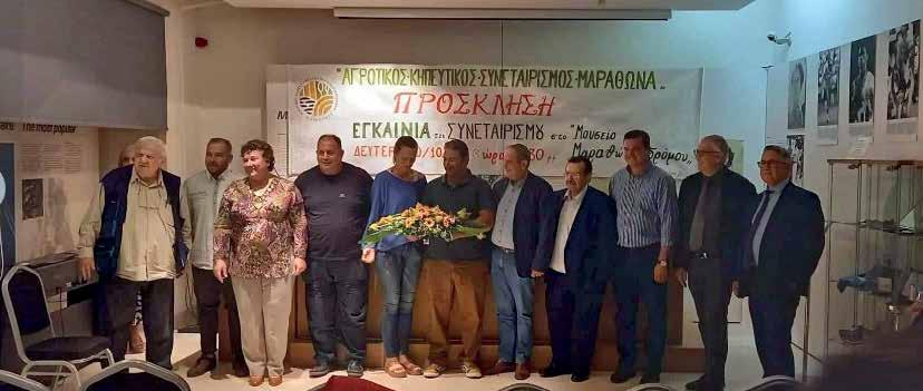 επωνυμία «Ο Μαραθώ νας». Επί του πιεστηρίου, λάβαμε την ενημέρωση ότι ο εν λόγω Κηπευτικός – Αγροτικός Συνεταιρι σμός συστάθηκε σε Σώμα, μετά από έκτακτη Γενι κή Συνέλευση, όπου διενεργήθηκε διαλογική δι αδικασία και μυστική ψηφοφορία. Το Διοικητικό Συμβούλιο διαμορφώθηκε ως εξής: Πρόεδρος Λά ζαρος Οικονομίδης, Αντιπρόεδρος Ευάγγελος Σιδέ ρης, Ταμίας Αλίκη Υφαντή, Γραμματέας Παναγιώτης Μπάτρης και Μέλος Γιάννης Σιδέρης. «Κάτι καινούργιο γεννιέται στον Μαραθώνα» όπως τιτλοφορήσαμε και το σχετικό ρεπορτάζ από την πρώτη παρουσίαση του Συνεταιρισμού σας κ. Οικονομίδη, πριν μερικές εβδομάδες. Ποια ήταν η αφορμή για τη νέα αυτή προσπά θεια στην περιοχή; Η αφορμή για τη δημιουργία του Συνεταιρισμού ξεκίνησε από μια συζήτηση που είχα, με υπάλληλο της ΔΑΟΚ Περιφερειακή Ενότητα Ανατολικής Αττι κής, για τυποποιημένα νωπά κηπευτικά προϊόντα, όπου και πληροφορήθηκα για τα χρηματοδοτι κά εργαλεία -προγράμματα - πλεονεκτήματα που έχουν τα συνεργατικά σχήματα. Οι συνεργασίες έχουν χαμηλότερο κόστος παραγωγής, λόγω εκ μηχάνισης και η συγκέντρωση - τυποποίηση των αγροτικών προϊόντων συλλογικά, δίνει τη δυνατό τητα επίτευξης καλύτερων τιμών. Δεν σας κρύβω βέβαια, ότι η δημιουργία ενός αγροτικού συνεταιρισμού ή ομάδας παραγωγών, ήταν κάτι που με απασχολούσε αρκετό διάστημα πριν. Ποιοι είναι οι βασικοί στόχοι του Συνεταιρισμού; Σας παραπέμπω σε σημεία του Καταστατικού: 1. Παρεχόμενες υπηρεσίες λογιστικής, φορολογι κής και φοροτεχνικής υποστήριξης, 2. Προβαίνει σε εκπόνηση μελετών ή σχεδίων και σε υποβολή φακέλων για προγράμματα αναγνώρισης εθνικού ή ευρωπαϊκού φορέα, 3. Παρέχει συμβουλευτικές υπηρεσίες από εξειδικευμένους επιστήμονες, γεω τεχνικούς (κτηνιάτρους και γεωπόνους) καθώς και ειδικότερες υπηρεσίες της αρμοδιότητας των επι στημόνων αυτών, 4. Ασκεί λιανικό εμπόριο ειδών διατροφής, βιολογικών προϊόντων και τροφίμων, 5. Τα παραγόμενα προϊόντα, ο Συνεταιρισμός τα δια θέτει στην εγχώρια και ξένη αγορά, 6. Παρέχει συ νεταιριστική εκπαίδευση κι επιμόρφωση στα μέλη του και διαδίδει την ιδέα