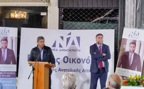 Αττικής ΝΔ Βασίλης Οικονόμου, τα εγκαίνια του πολιτικού του γραφείου στις Αχαρνές Αττικής, πλημμυρίζοντας με κόσμο την πλατεία του Αγίου Βλασίου, σε μια από τις πιο δύσκολες εκλογικές περιοχές για τη Νέα Δημοκρατία. Ο Υφυπουργός Αθλητισμού Λευτέ ρης Αυγενάκης και ο Δήμαρχος Αχαρ νών Σπύρος Βρεττός προλόγισαν με θερμά λόγια τον Βουλευτή, ενώ αξι οσημείωτες ήταν οι παρουσίες των Δημάρχων: Διονύσου Γιάννη Καλαφα τέλη, Μαραθώνα Στέργιου Τσίρκα και Λαυρεωτικής Δημήτρη Λουκά, των Αντιπεριφερειαρχών