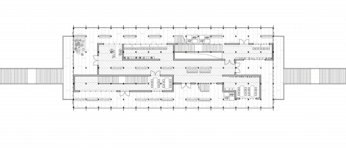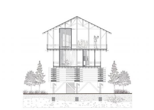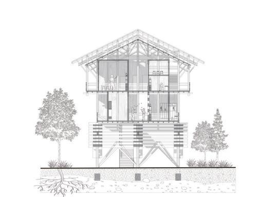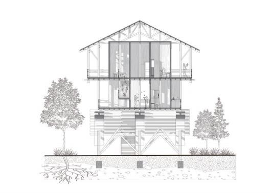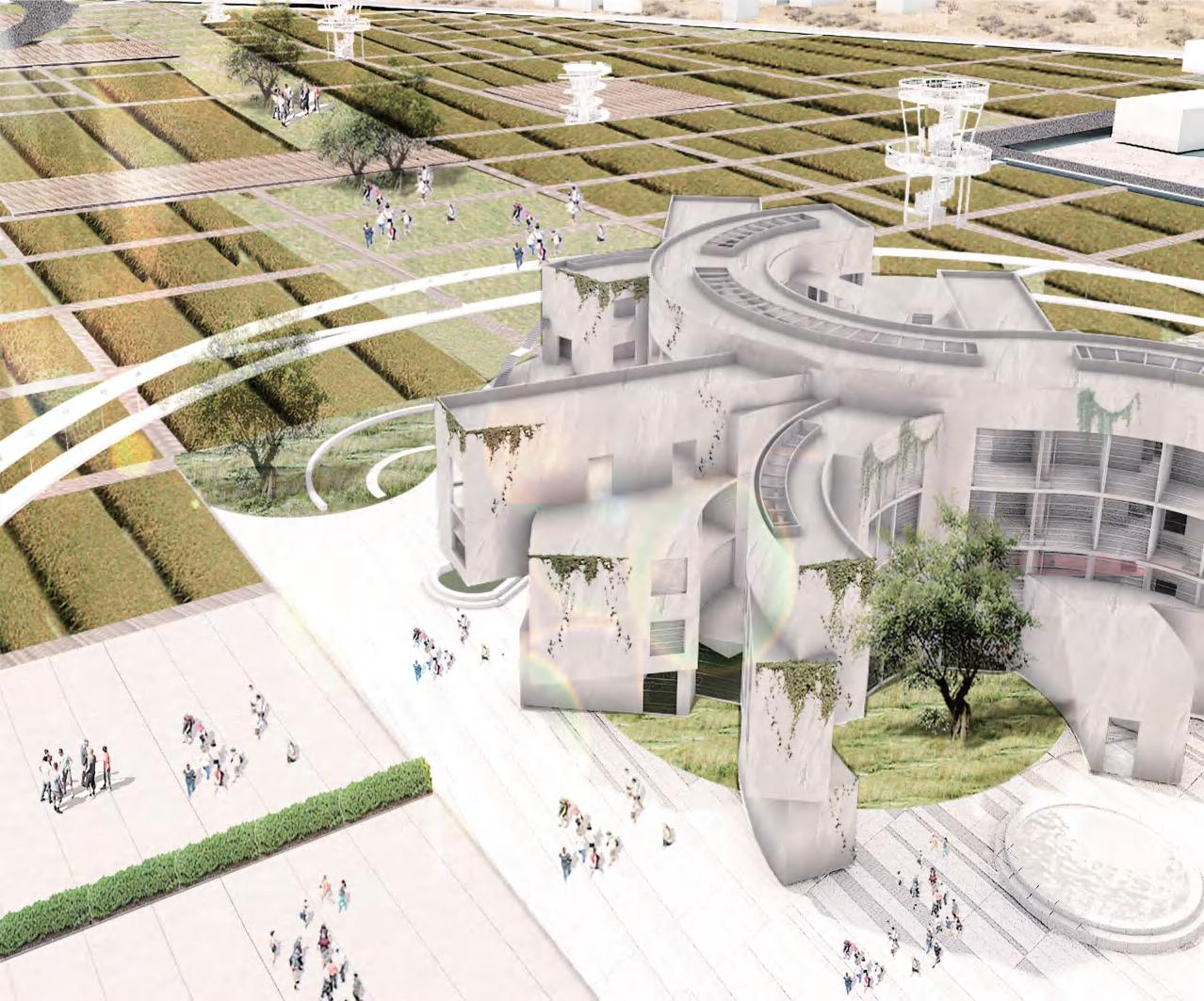 By exposing the structure, the roof creates a space for cultivation to meet the needs of the later food supply.