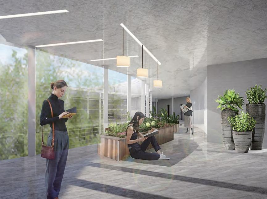 Garden communication area: The large glass curtain wall and the split-level space provide people with a space for communication and experiencing sunlight.