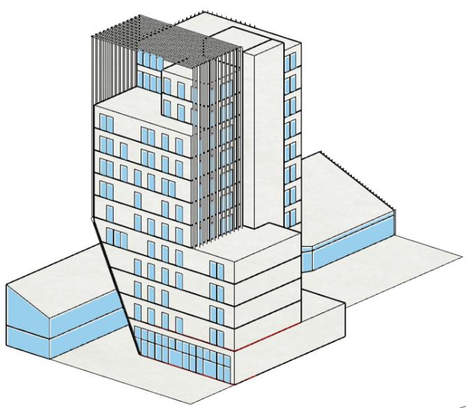 In-Between is an office complex lies in central Milan, near the central station. I was member of 9-member group and my task was oriented to the energy performance of building, from the very first stages of the massing, glazing and shading till the technical detailing of the building.