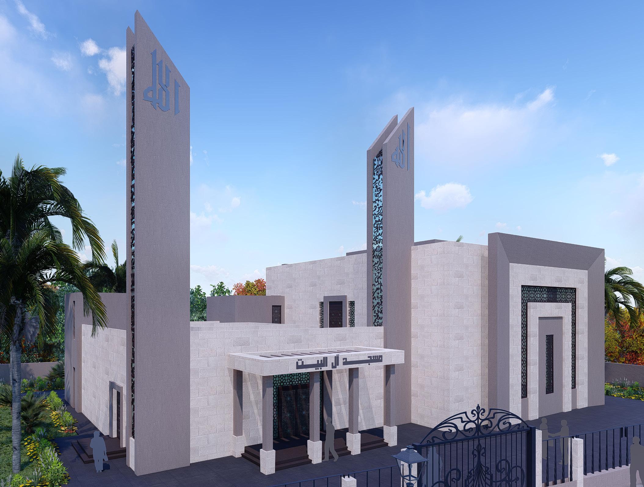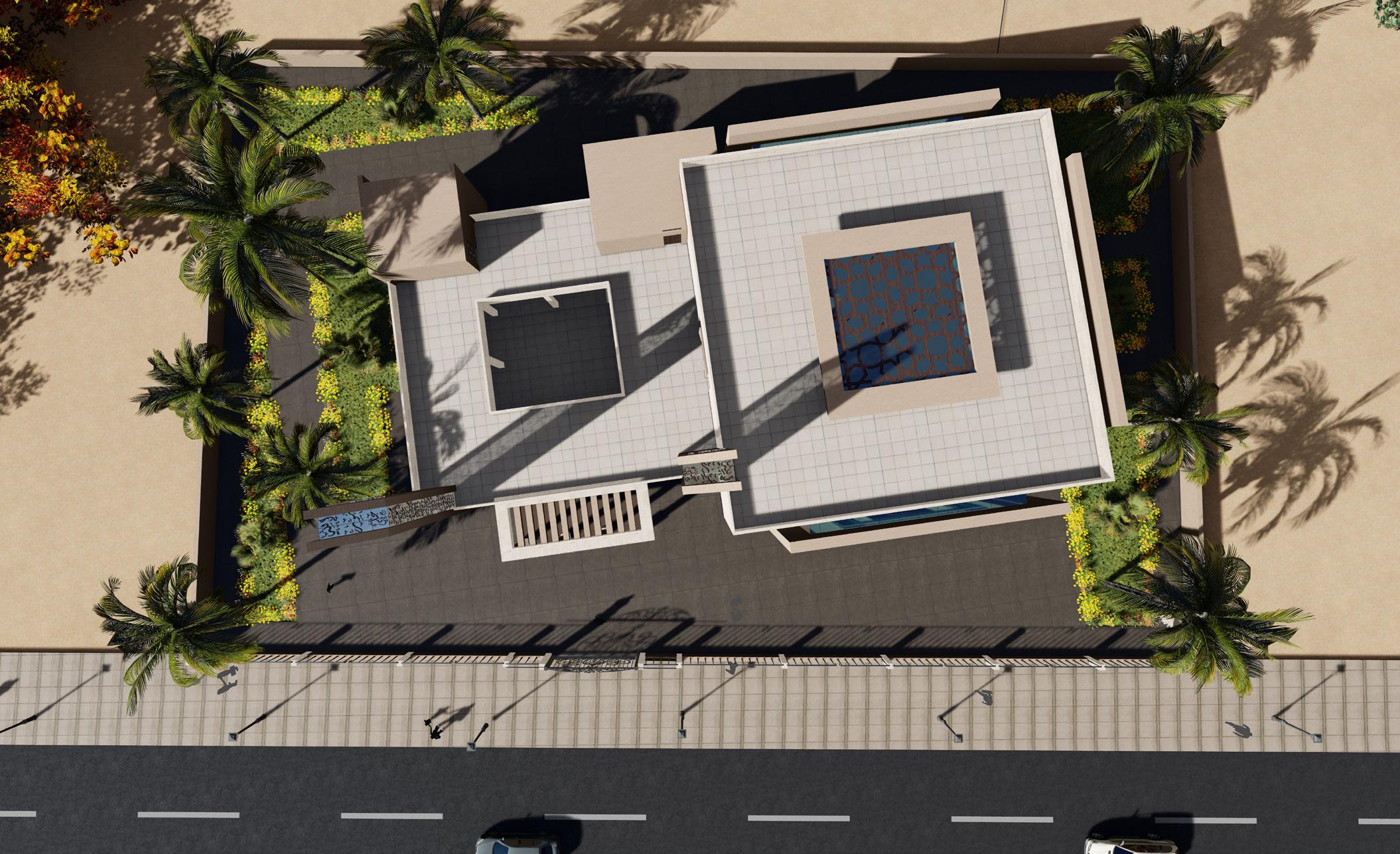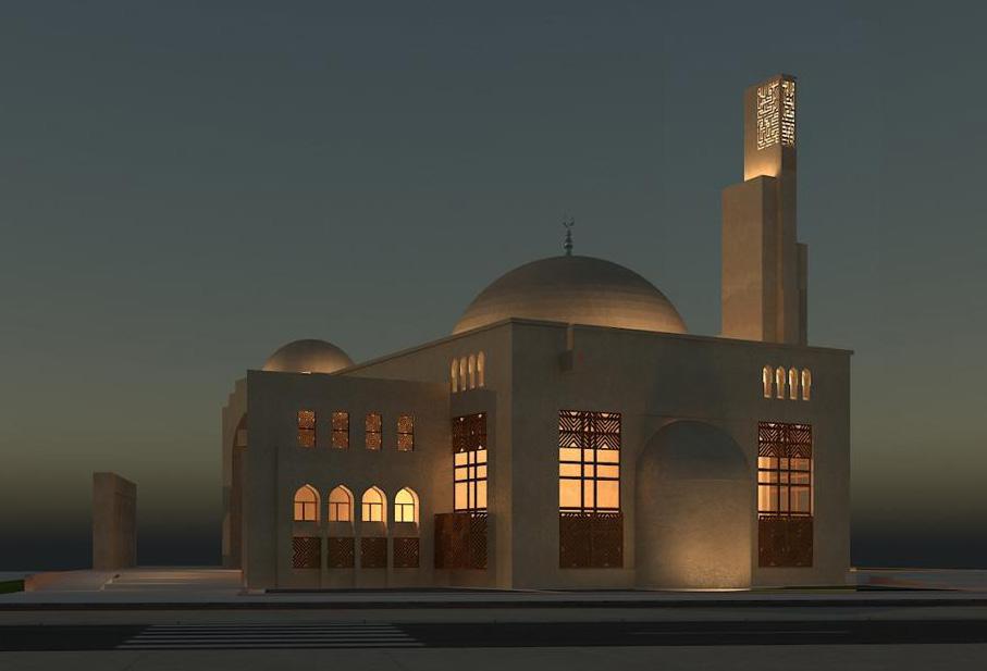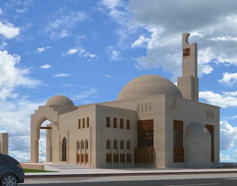 The mosque lies in Sheikh Zayed City, Egypt. I was commissioned to design the mosque from scratch till the 3D visualization of the mass. The challenge was the site orientation as it was not aligned with the Qibla direction, that’s why the masses ere shifted.