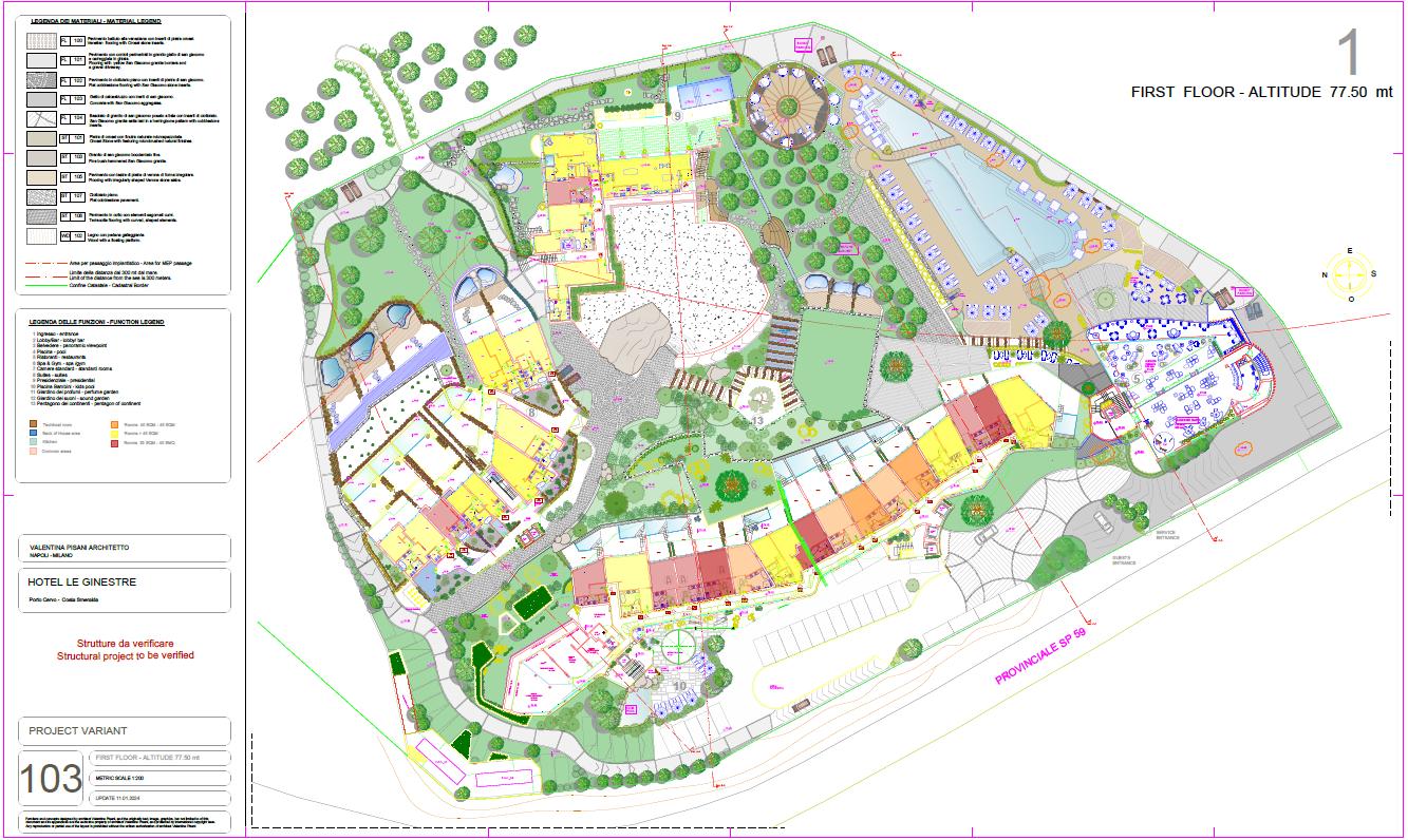 On a land of 16,000 square meters, a luxurios 5-star hotel is designed in Sardegna, Italy. I participated with two of my colleagues to transform all conceptual architectural drawings into construction working drawings including plans, sections, elevations, ceilings, detail design, doors and windows.