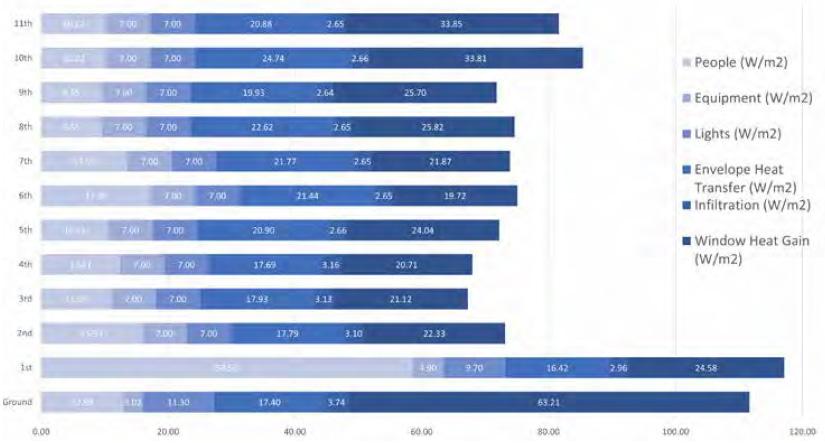 A primary air system was chosen according the analyzed thermal loads in each floor.