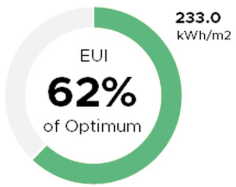 A fixed volum of 38000 m3 is decided from the Arch. program, then different mass options are assessed in Climate Studio in terms of EUI (the % relates all cases to the most compact mass)