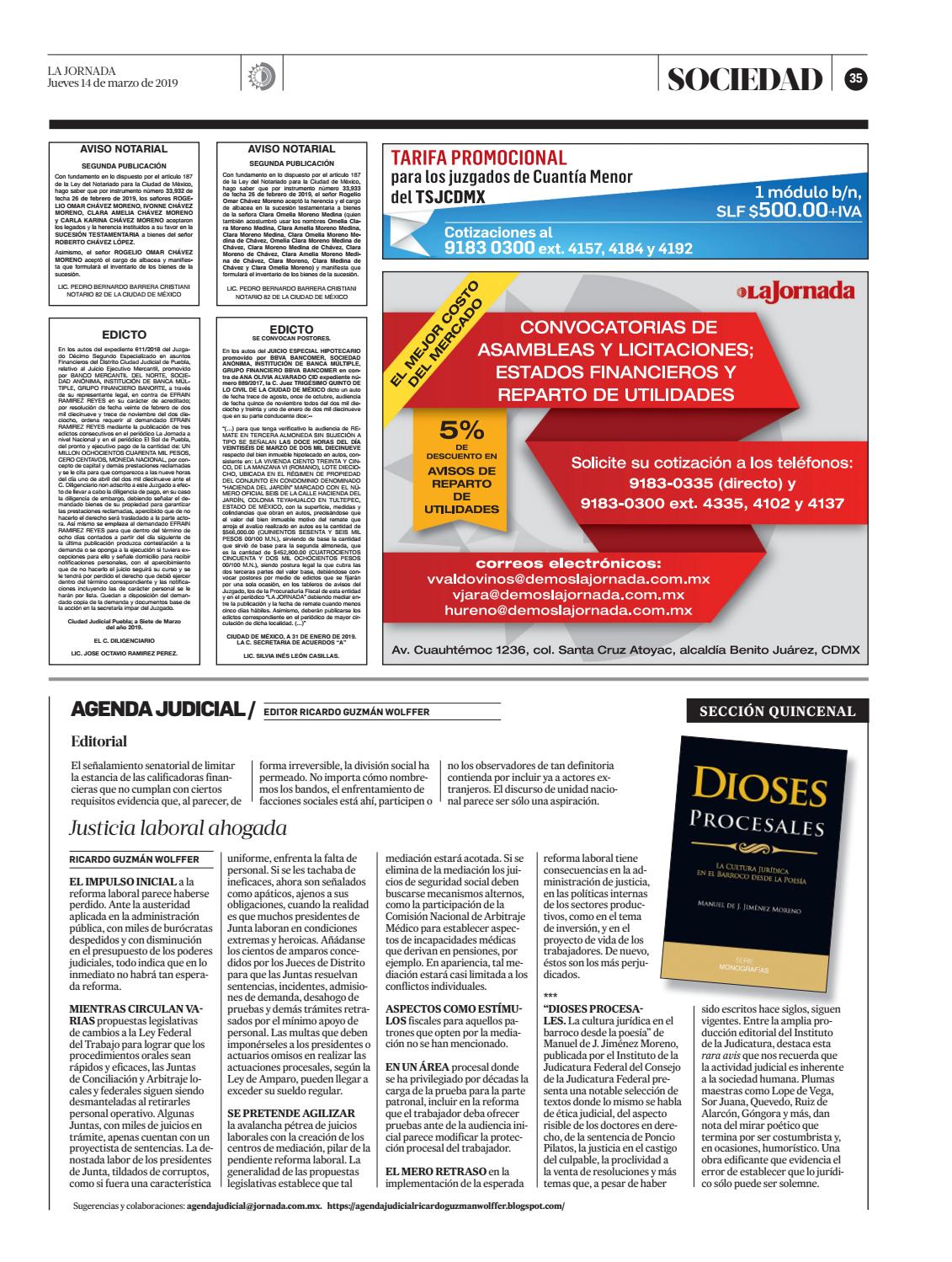 Sugerencias y colaboraciones: agendajudicial@jornada.com.mx. https://agendajudicialricardoguzmanwolffer.blogspot.com/